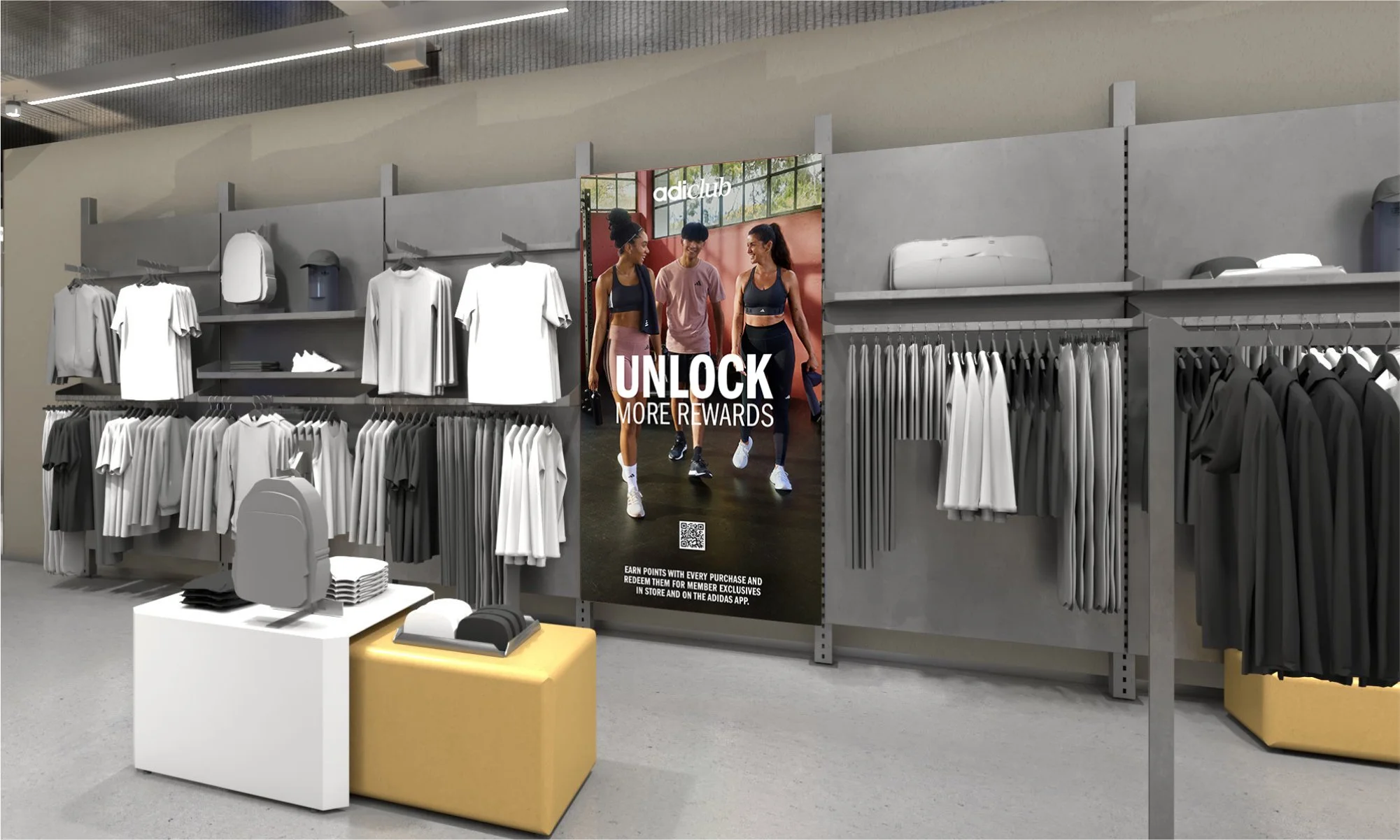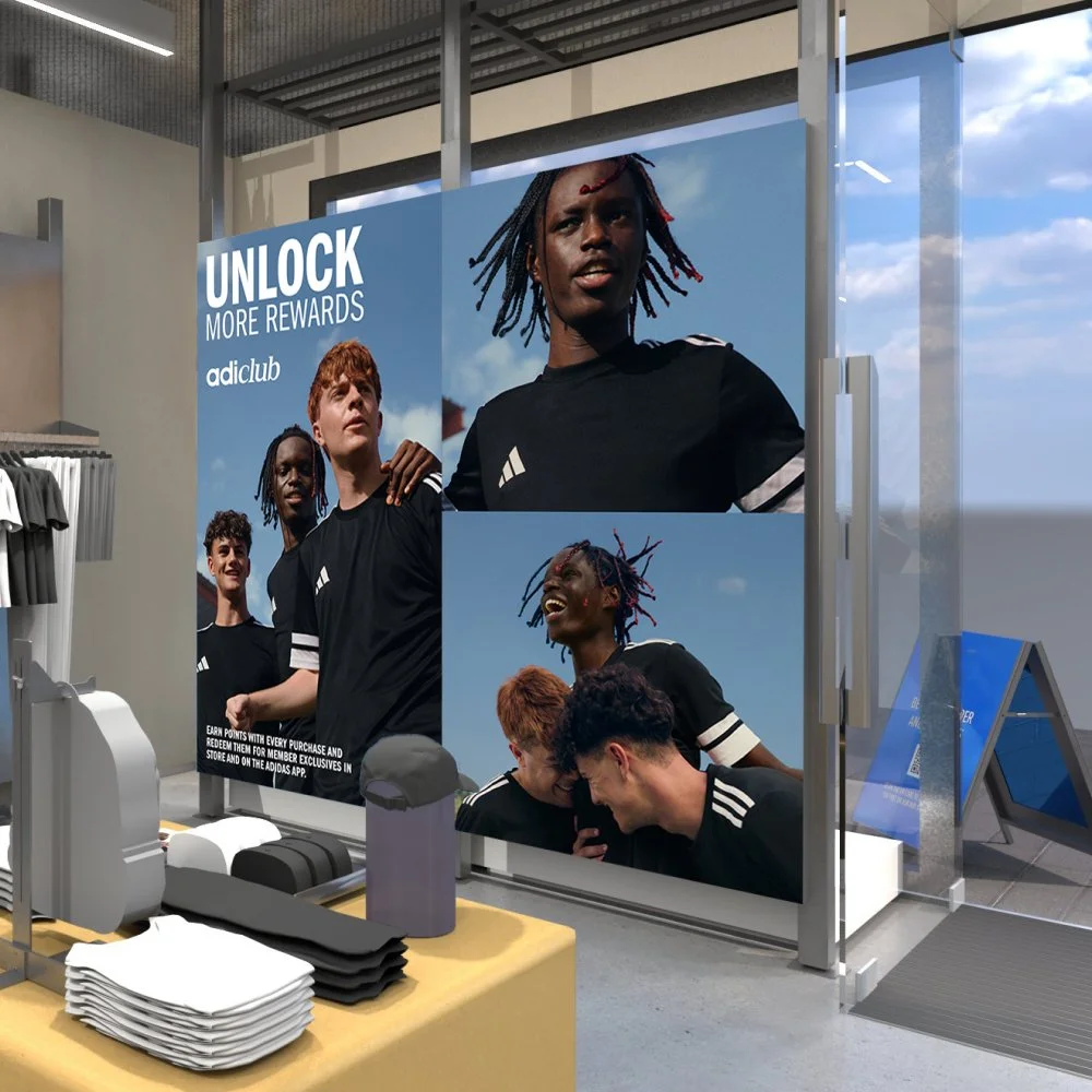 For retail, we refined and developed specific rules to adapt typography, iconography, and layouts for in-store use. This ensured that the adiClub identity worked consistently while addressing the unique needs of physical environments.